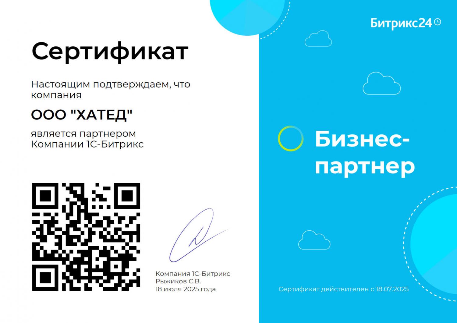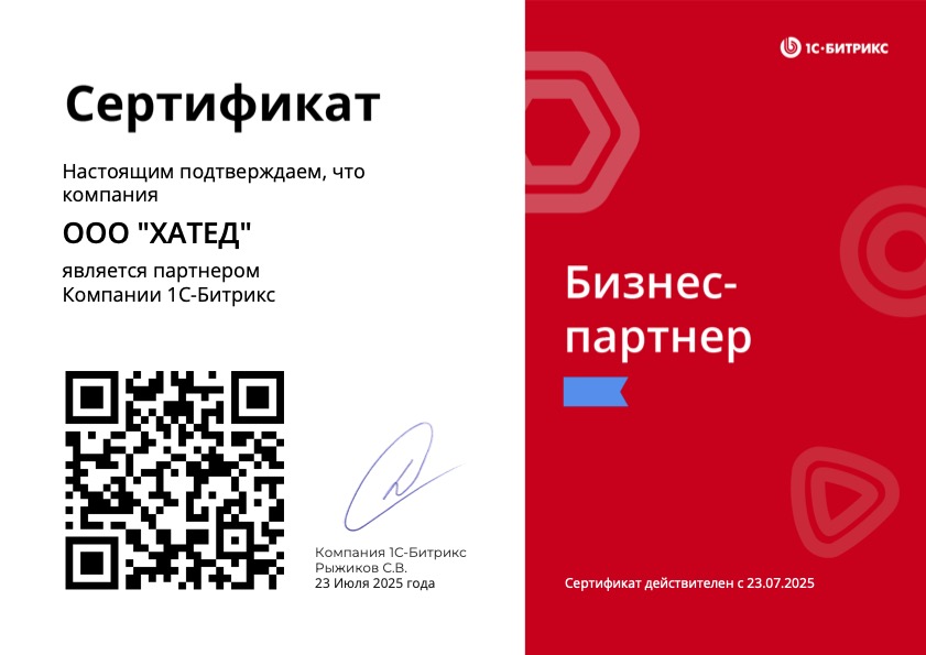 Статус бизнес-партнер присваивается компаниям, обладающим опытом разработки веб-проектов, в том числе сложных программных решений на основе продуктов 1С-Битрикс.