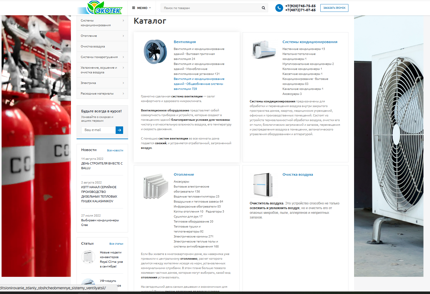 Сайт для компании ООО "Экотек" представляет интернет-магазин с качественно проработанными детальными страницами товаров, на которых выведены основные информация и характеристики товара, приведены технические сведения о продукции.